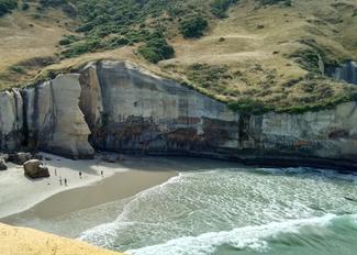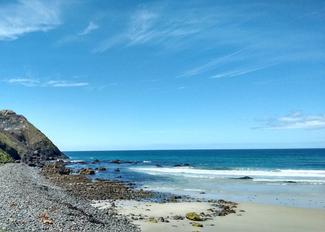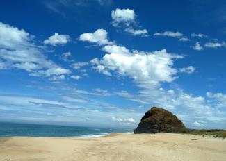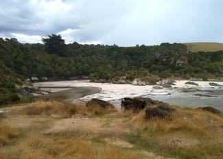 Remote beach on the Otago Peninsula. Nearby natural pyramids provide extraordinary panoramic views.