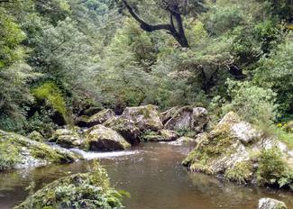 Closed: Peaceful waterfall at the end of a walking track in the Waipori Gorge.