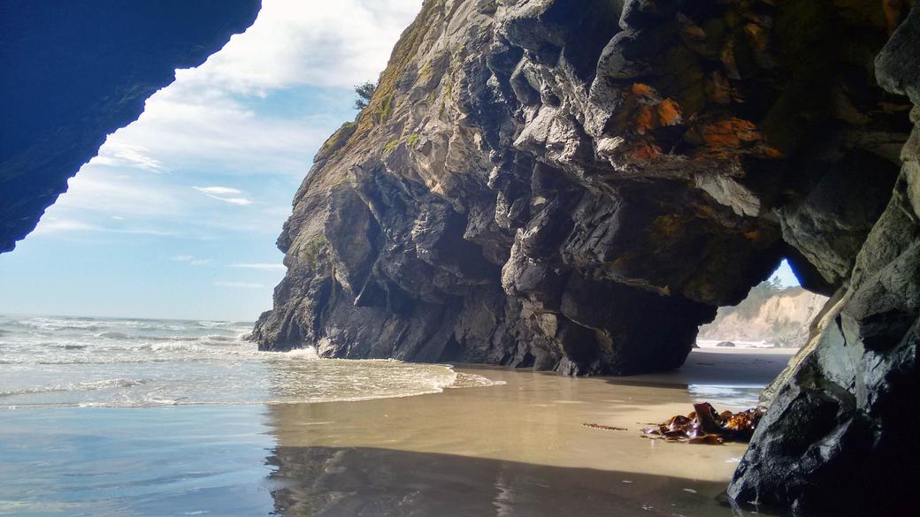 The nearby sea caves are naturally occurring arches in the rock cliffs. They are not passable at high tide, so make sure to time your visit at low tide. The caves connect onto another beach where you can see Mapoutahi Head, the site of a historic Maori Pa.